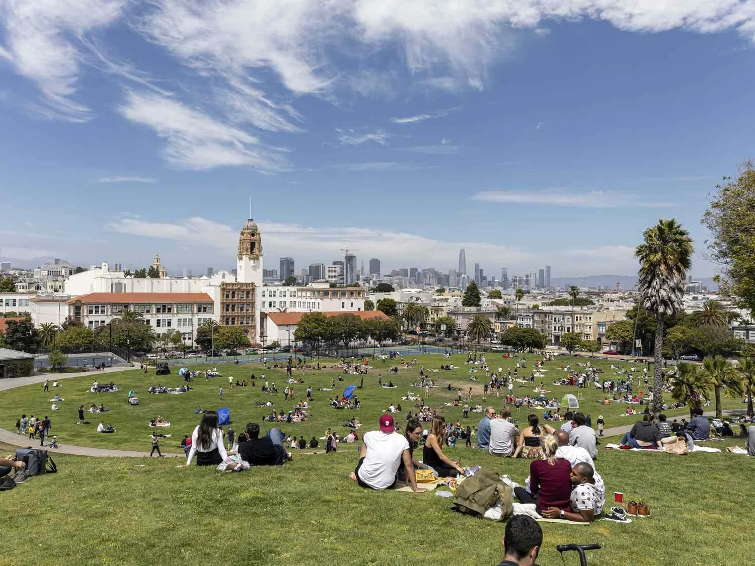 Dolores Park, a wonderful place to relax and people watch in San Francisco. Bring lunch, a blanket, and enjoy the sun in the Mission.
